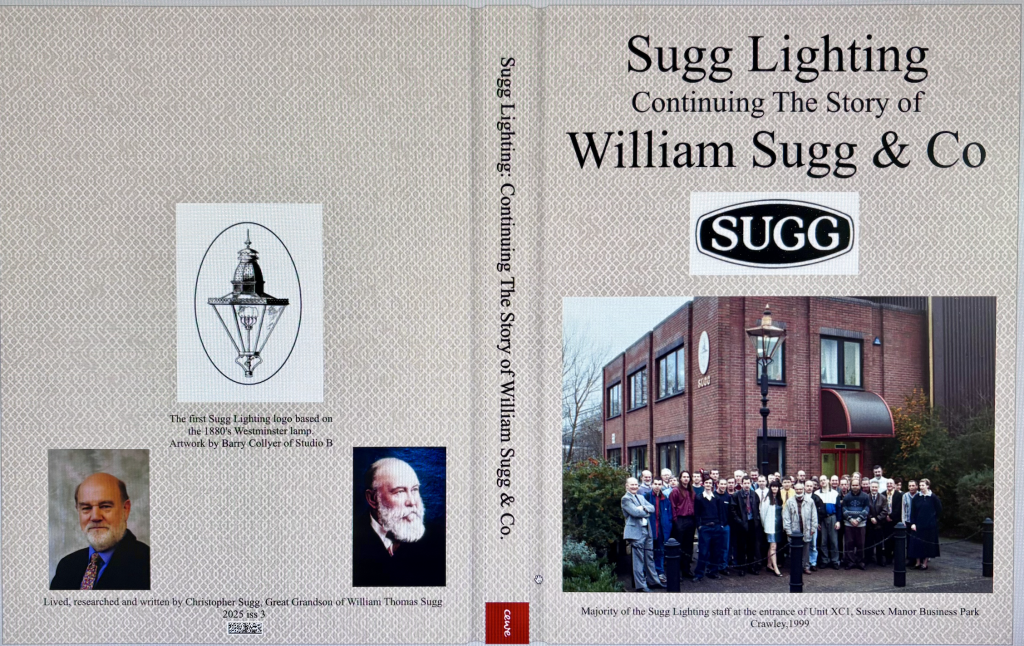 In retirement I have produced a history of the original business and now completed a further history of the business that was Sugg Lighting. This is in the form of a hard back A4 photobook printed by CEWE, the biggest european producer of these publications. It has 162 pages with 712 pictures covering the story from very small beginnings to a substantial specialist lighting manufacturer from reintroducing gas lights during the miners strike with the 3-day week to the new world of fabulous pubs suitable for the whole family and on to the rise and rise of the Shopping Centre where we built some remarkable traditional and super modern fixtures. The original Euro Disney used many special Sugg lamps and the ongoing business continued with some splendid projects.